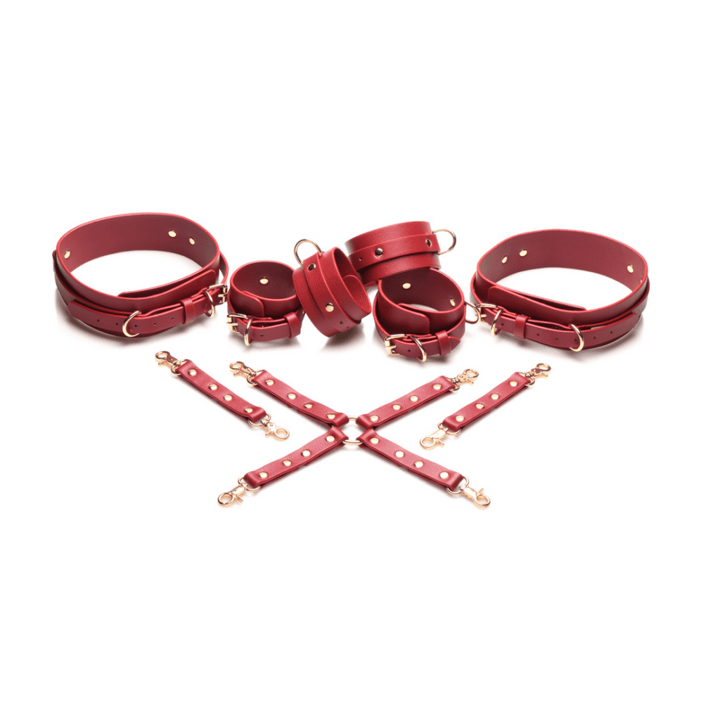 Crimson Captive - Dijbeen, Pols en Enkel Hog Tie Beperkingen - Rood