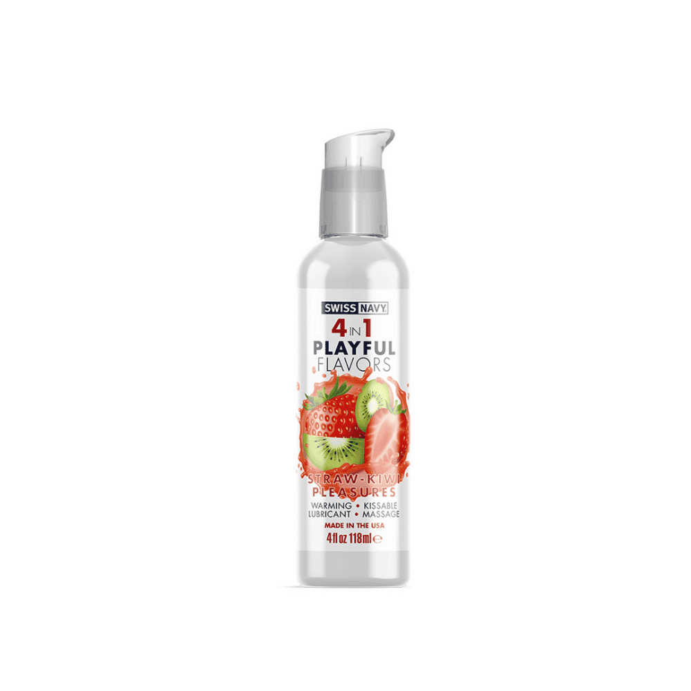 4 in 1 Playful Flavors - Lubricant with Straw-Kiwi Pleasures Flavor - 4 fl oz / 118 ml
