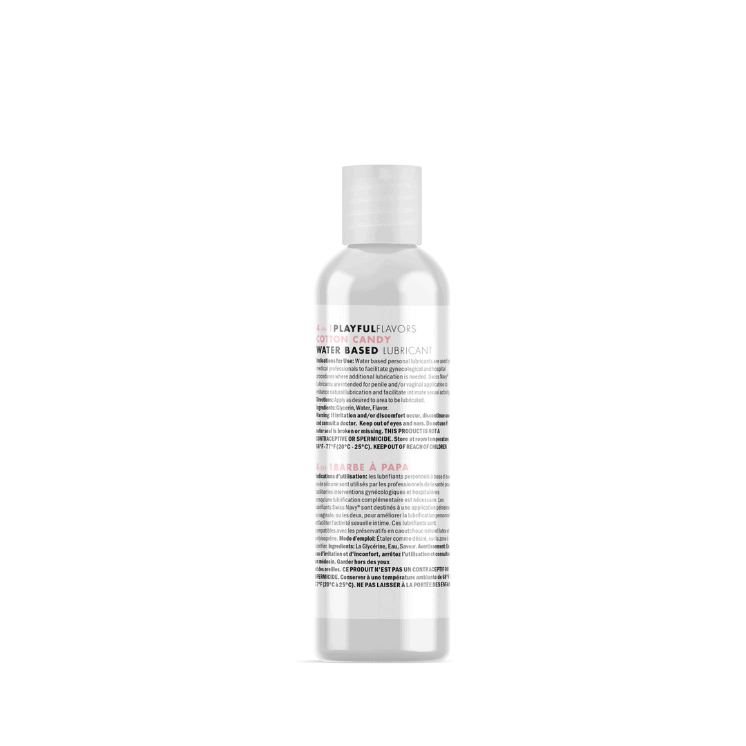 Onze Swiss Navy® Flavors smaken zo echt dat ze te goed lijken om glijmiddelen te zijn. We hebben een Fortune 500 voedingsbedrijf ingeschakeld om onze smaken te formuleren en ervoor te zorgen dat Swiss Navy® Flavors echt smaken zoals hun naam. Alle smaken zijn vrij van parabenen, suikervrij en plakken niet. 4-in-1 Speelse Smaken beloven speelse genot in al zijn vormen! Suikerspin roept blije herinneringen op en heeft een uniek smaakprofiel dat is beschreven als zoet, karamelachtig, jamachtig, fruitig en bessenachtig – allemaal samengevoegd in één. Suikerspin 4 in 1 Speelse Smaken is gemakkelijk te beschouwen als een sensuele traktatie met zijn delicate zoetheid en kussensachtige, zijdezachte textuur. 1 Verwarmend Genot Liefde Voelt Warm. Warmte is comfortabel, ontspannend en ongelooflijk sensueel. Het toevoegen van het element van warmte aan je sexy ontmoetingen creëert een natuurlijk hete sensatie-ervaring. 2 Eetbaar Plezier Liefde Smaakt Goed. Creëer heerlijke, kusbare avonturen op werkelijk verrukkelijke manieren. Betrek meer van je zintuigen met een speelse eetbare ervaring. 3 Zacht Glijmiddel Liefde Duurt Lang. Soms wil je dat het genot voor altijd aanhoudt, toch? Dit zijdezachte, sensuele glijmiddel ondersteunt de liefde met een langdurige formule. 4 Opwindende Massage Hou van Elke Aanraking. Elke streling en beweging prikkelt je zintuigen. Inspireer speels je massage-waardige momenten met een vloeibare, moeiteloze glijding. 1+2+3+4 = Oneindige Speelse Liefdesmogelijkheden! Speelse Smaken is glijmiddel voor jouw levensstijl. Van ondeugende voorspel tot surrealistische seks, 4-in-1 Speelse Smaken maakt het gemakkelijk om manieren te verkennen om meer spel aan je liefdesleven toe te voegen.