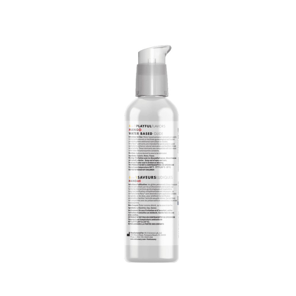 Onze Swiss Navy® Flavors smaken zo echt dat ze te goed lijken om glijmiddelen te zijn. We hebben een Fortune 500 voedingsbedrijf ingeschakeld om onze smaken te formuleren, zodat Swiss Navy® Flavors echt smaken zoals hun naam. Alle smaken zijn vrij van parabenen, suikervrij en plakken niet. 4-in-1 Speelse Smaken beloven speelse genot in al zijn vormen! Mango levert de exotische, zoete smaak en pittige geur van verse Mango om je zintuigen – en je smaakpapillen – te prikkelen! Breng royaal aan om te genieten van een smaakvolle Mango-fruitervaring. Wrijf zachtjes of blaas op de vloeistof om een verleidelijke warmte vrij te geven. Of geniet van de gladde heerlijkheid wanneer het wordt toegevoegd aan een massage of gebruikt voor smering. Mango 4-in-1 Speelse Smaken boeit en inspireert al je zintuigen! 1 Verwarmend Genot Liefde Voelt Warm. Warmte is comfortabel, ontspannend en ongelooflijk sensueel. Het toevoegen van het element warmte aan je sexy ontmoetingen creëert een natuurlijk hete sensatie-ervaring. 2 Eetbaar Plezier Liefde Smaakt Goed. Creëer heerlijke, kusbare avonturen op werkelijk verrukkelijke manieren. Betrek meer van je zintuigen met een speelse eetbare ervaring. 3 Glad Glijmiddel Liefde Duurt Lang. Soms wil je dat het genot voor altijd aanhoudt, toch? Dit zijdezachte, sensuele glijmiddel ondersteunt de liefde met een langdurige formule. 4 Verleidelijke Massage Hou van Elke Aanraking. Elke streling en beweging prikkelt je zintuigen. Inspireer speelse momenten die massage waardig zijn met een vloeibare, moeiteloze glij. 1+2+3+4 = Oneindige Speelse Liefdesmogelijkheden! Speelse Smaken is glijmiddel voor jouw levensstijl. Van ondeugende voorspel tot surrealistische seks, 4-in-1 Speelse Smaken maakt het gemakkelijk om manieren te verkennen om meer spel aan je liefdesleven toe te voegen.