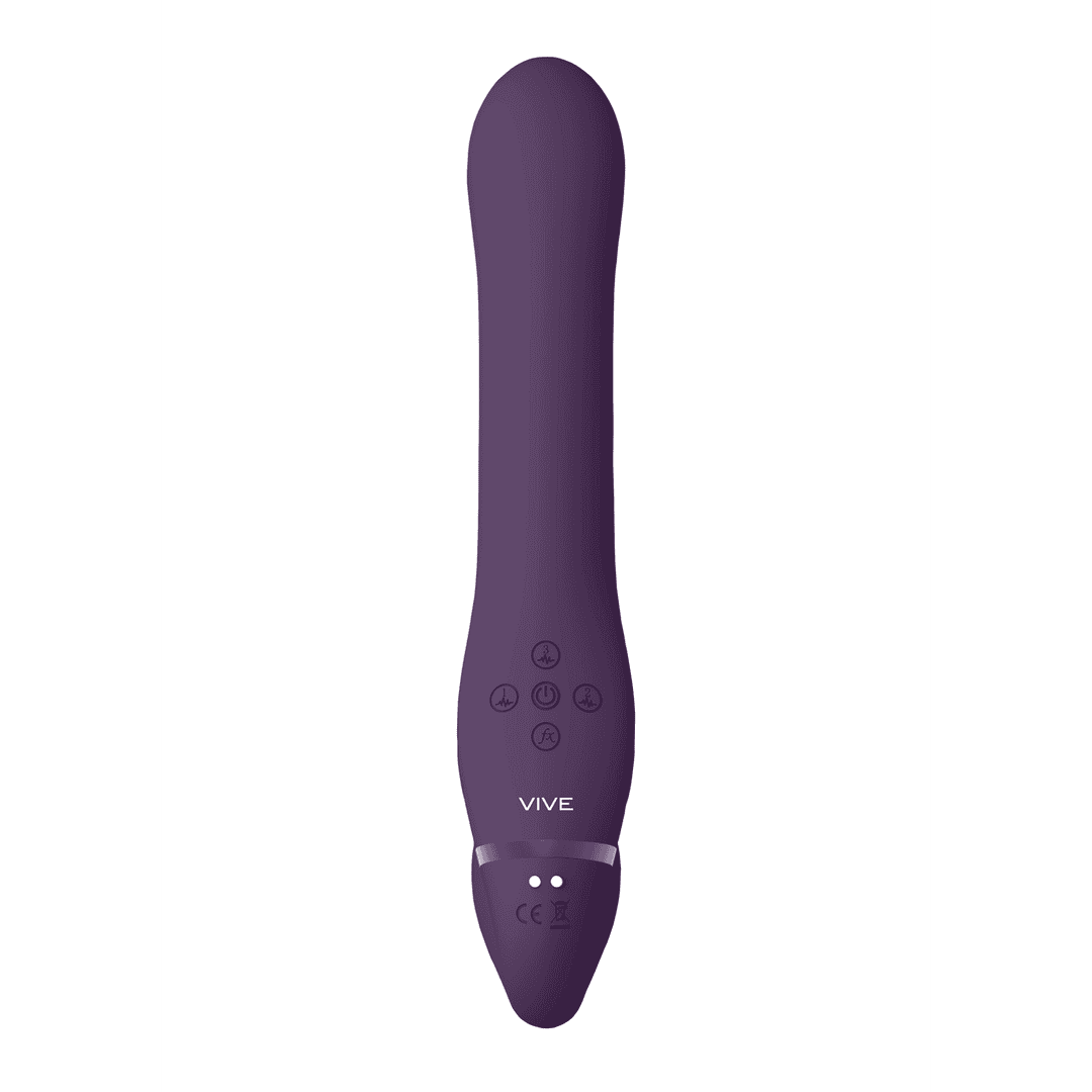 De strapless VIVE047 G-spot strap-on met kietelende luchtdruk technologie doet zeker zijn ding aan beiden uiteinden. Drie onafhankelijk gestuurde New Generation F1 motors zorgen voor 10 verschillende snelheden/vibratiefuncties in deze prachtig ontworpen vibrator. Er is een vibrerende G-spot stimulator, een inwendige vibrerende functie en een kietelende clitorale luchtdruk stimulator. Met meer dan 1000 verschillende combinaties brengt dit speeltje je naar plaatsen waar je nog nooit van gedroomd hebt. Wanneer je bijna op je hoogtepunt bent, is één aanraking van de climax-knop voldoende om alle motoren op volle kracht/snelheid te laten draaien. De volledig USB magnetische herlaadbare vibrator van medisch silicone biedt een batterijduur van 45 minuten en is volledig waterdicht (IPX7), dit betekent dat je overal waar je maar wilt van dit speeltje kunt genieten. Alle VIVE-vibrators hebben een garantie van 1 jaar.