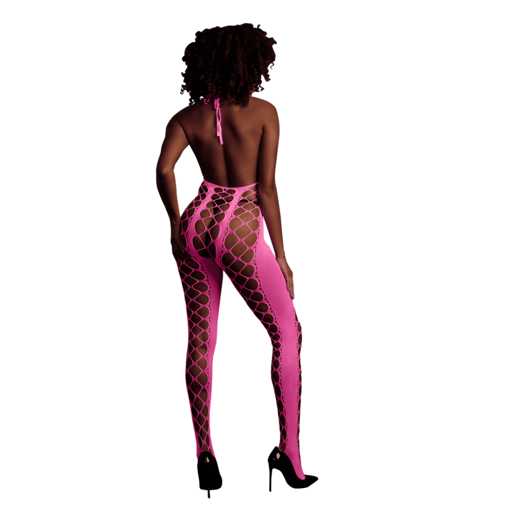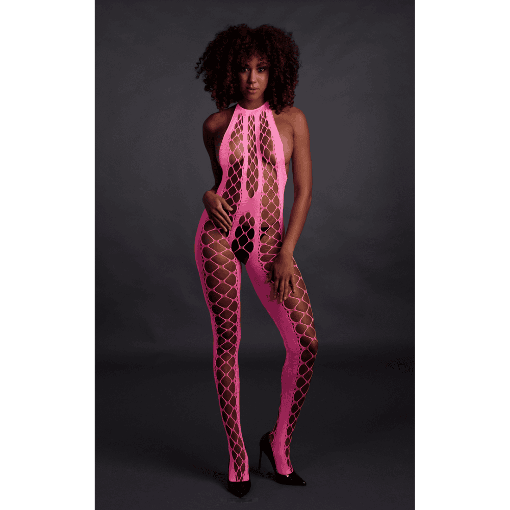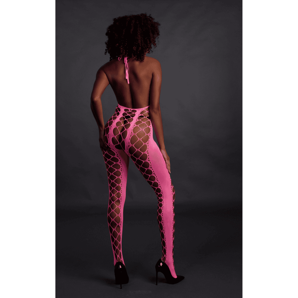 Our Neon lingerie is the perfect addition to your collection. Made with comfortable, easytofit, stretchy materials they are designed to fit your body perfectly. Whether you’re using them as party wear or as lingerie, this eye-catching piece will make sure you stand out! Unleash your inner goddess with this stunning UV activated lingerie. This gorgeous bodystocking has a showstopping halterneck and a low-cut back. An amazing party-wear that gives you that wow-factor and makes you stand out. The UV activated materials adds a touch of mystery and allure. Easy to fit because of the stretchy materials will make you light up the night. Available in neon pink and neon green. Sizes run from XS/ XL to XL/XXXXL