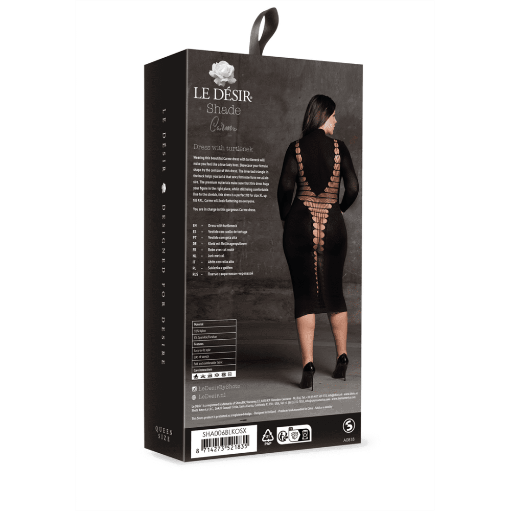 Wearing this beautiful Carme dress with turtleneck will make you feel like a true lady boss. Showcase your female shape by the contour of this dress. The inverted triangle in the back helps you build that sexy feminine form we all desire. The premium materials make sure that this dress hugs your figure in the right place, while still being comfortable. Due to the stretch, this dress is a perfect fit for size XL up till XXXXL. Carme will look flattering on everyone.