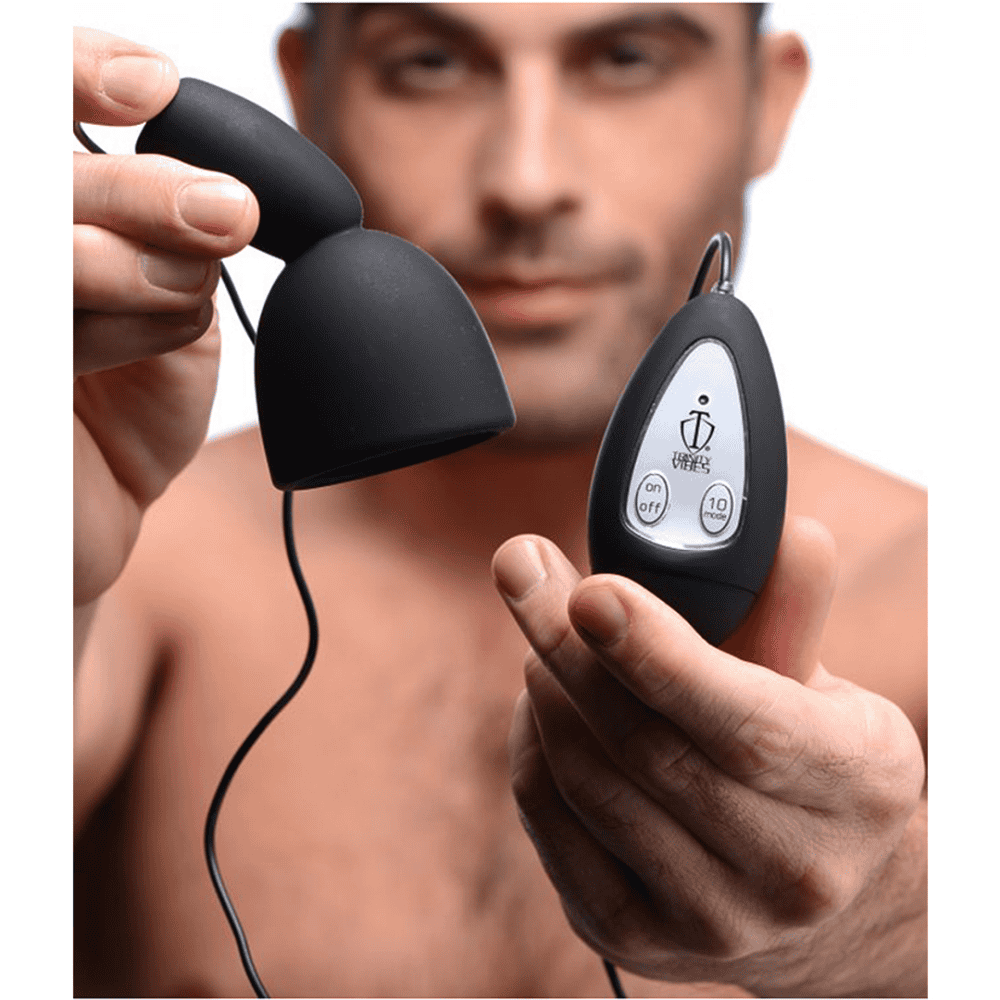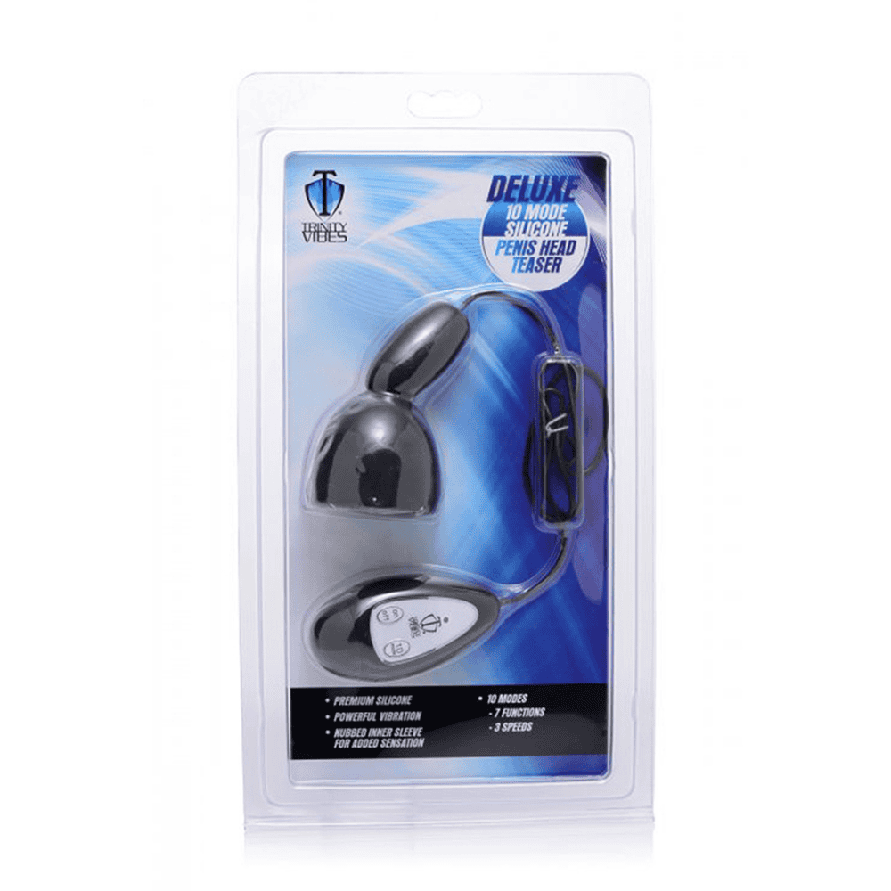Tijdens masturbatie of tijdens het spelen met een partner, introduceert deze headteaser nieuwe vormen van stimulatie voor je pik! Plaats de elastische mouw met noppen over het puntje van je pik en experimenteer met 10 modi van krachtig zoemend genot, inclusief 3 snelheden van vibratie en 7 pulserende functies. Je zult genieten van de extra sensaties als je schacht wordt gestreeld, je ballen worden gestreeld, of je wordt geplaagd voorbij extase. Dit apparaat is gemaakt van eersteklas siliconen en is niet-poreus en ftalaatvrij voor eenvoudige sterilisatie met milde zeep en warm water. Niet compatibel met siliconen smeermiddelen. Vereist 2-AAA-batterijen, niet inbegrepen.