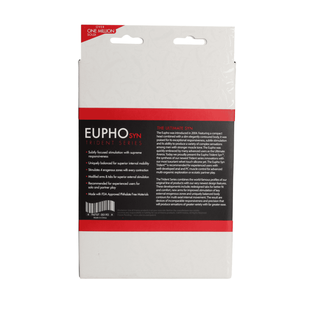 De Eupho Syn, geïntroduceerd in 2013, werd door ervaren gebruikers snel erkend als de Ultimate Aneros vanwege zijn vermogen om complexe sensaties te produceren met maximale respons en comfort. Vandaag presenteren we met trots de Eupho Syn Trident™, waarin onze nieuwste innovaties uit de Trident-serie zijn geïntegreerd met onze meest weelderig fluwelen siliconen tot nu toe. De speciaal uitgebalanceerde rondingen van de Eupho Syn Trident™ zorgen voor een nog nauwkeurigere controle en verhoogde mobiliteit voor ervaren solo-gebruikers. Het kleinere profiel is ook perfect voor mensen die nieuw zijn met prostaatspel en combineert het grootste comfort met bewegingsvrijheid tijdens geslachtsgemeenschap voor langere krachtigere orgasmen