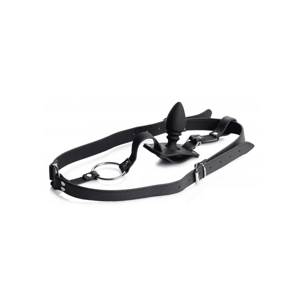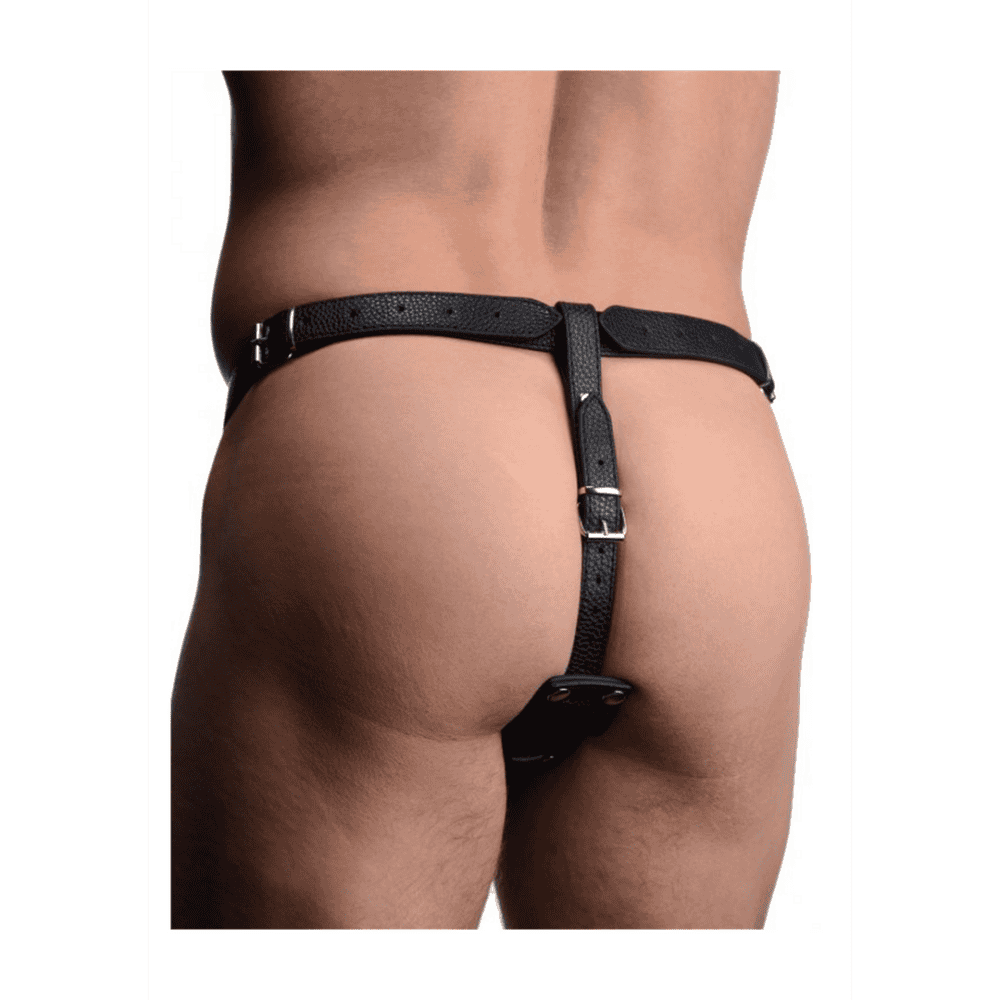 Houd je partner gevuld en klaar voor actie! Dit harnas combineert een harde, meedogenloze metalen cockring met een geribbelde siliconen buttplug. Trek de penis en het scrotum door de ring om een ​​keiharde en ultragevoelige erectie te creëren. Duw de taps toelopende punt van de plug naar binnen en geniet van het plezier van uw partner terwijl de ribbels daarna naar binnen gaan. Span de banden aan zodat ze zich gevangen voelen en geniet van hun wanhoop! De plug kan ook worden verwijderd om alleen mee te spelen, met een handige zuignap. Niet compatibel met siliconen smeermiddel. Reinig met milde zeep en warm water.