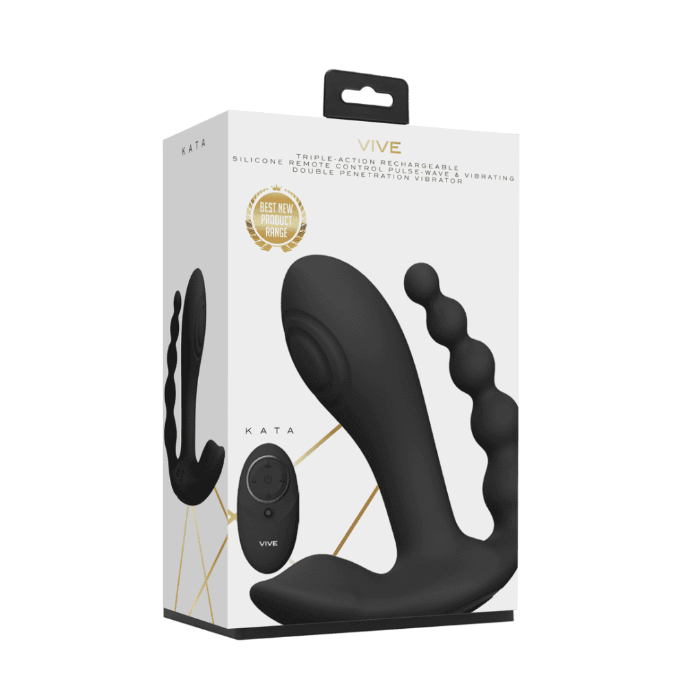 KATA raakt alle fijne plekjes. Met drie nieuwe generatie F1-motoren met 10 functies en geavanceerde technologieën (alle drie de motoren kunnen onafhankelijk worden bediend met de hoofdeenheid of de afstandsbediening): één innovatieve NG F1-pulsgolfmotor met 10 functies voor uw G-Spot, één 10- functie NG F1 vibrerende motor voor clitorisstimulatie en een 10-functie NG F1 motor voor anale stimulatie. Het zal je zeker naar maximale hoogten van plezier brengen in al je erogene zones. Er is geen gedoe met de bedieningselementen wanneer u de oplaadbare USB-afstandsbediening gebruikt. Of geef de afstandsbediening aan uw partner voor extra slaapkamer plezier. Al met al is dit speeltje in te stellen op 1000 verschillende standjes. Het speeltje is gemaakt van 100% zijdezacht siliconen van medische kwaliteit (hypoallergeen), volledig waterdicht (IPX7) en extreem stil met minder dan 60 dB. Dit betekent dat je hem overal kunt gebruiken waar je hartje begeert! De lithium-ionbatterij van het speeltje word opgeladen middels de magnetische USB aansluiting. Wanneer hij volledig is opgeladen, biedt hij 40 minuten aan gepassioneerde speeltijd. Zo simpel: aansluiten, opladen en heerlijk spelen! Wanneer je bijna een climax nadert, kun je met één druk op de speciale functie climax-knop alle motoren onmiddellijk op volle kracht / snelheid zetten en, nog belangrijker, je naar een wereldschokkend orgasme brengen. Alle VIVE-vibrators worden geleverd met een volledige garantie van 1 jaar.