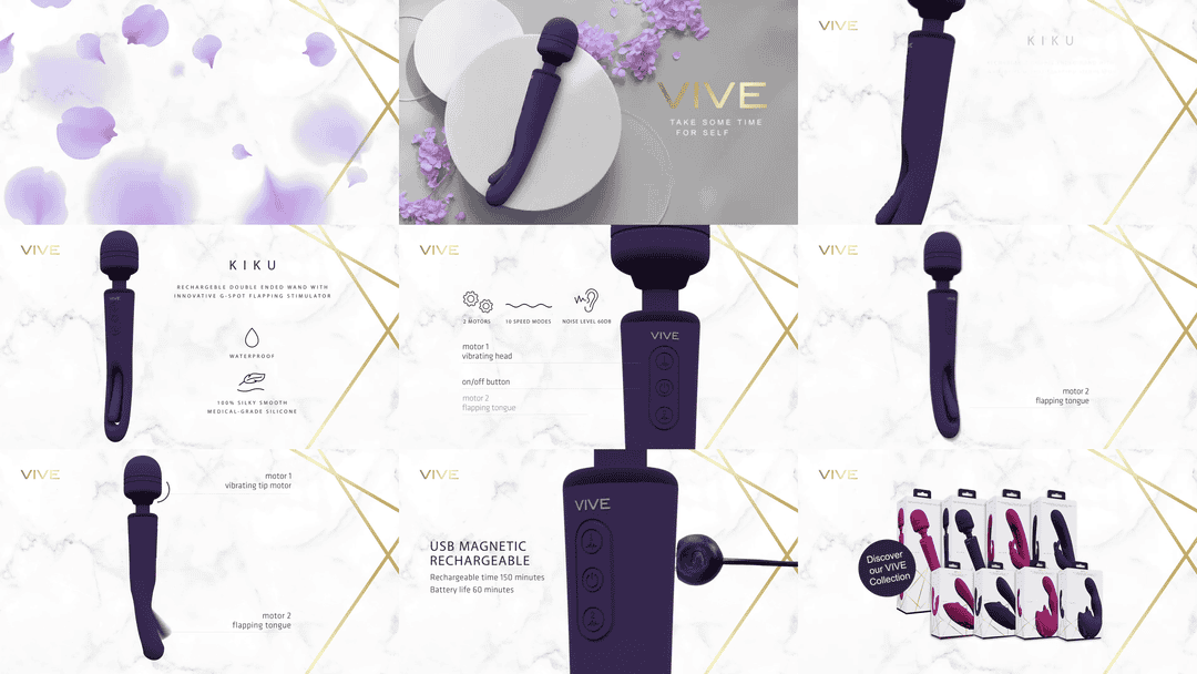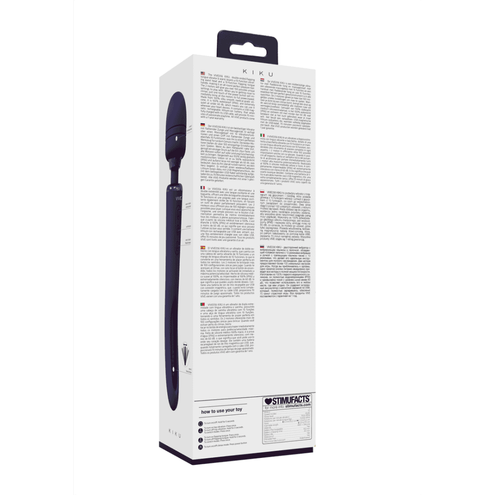 The VIVE056 KIKU, double-ended,flapping tongue vibrator wand, boasts a 10-function vibrating wand head and a 10-function flapping tongue handle, making it an all-round perfect pleasure tool. The 2 motors will give you over 100 possible unique settings to play with. When you’re getting close to climax, just one touch of the power button will immediately bring all the motors to full power/speed. Made from 100% silky smooth medical-grade silicone, it is 100% waterproof (IPX6), and extremely quiet at under 60 db, which means you can use it wherever your heart desires. It contains a USB magnetic rechargeable lithium-ion battery, that when fully charged with its USB cable, will provide 70 minutes of passionate playtime. All VIVE products come with a 1-year warranty.