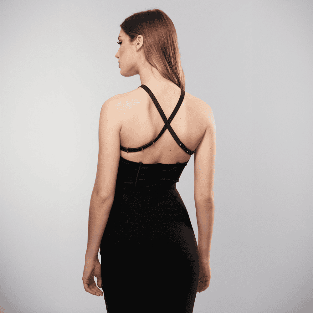 Het gekruiste harnas siert en maakt je bovenste helft smaller. Past perfect bij je outfits of durf hem op de blote huid te dragen. Afmetingen Borst: 125 cm (49,21 inch). Verlengers25cm (9,84 inch)