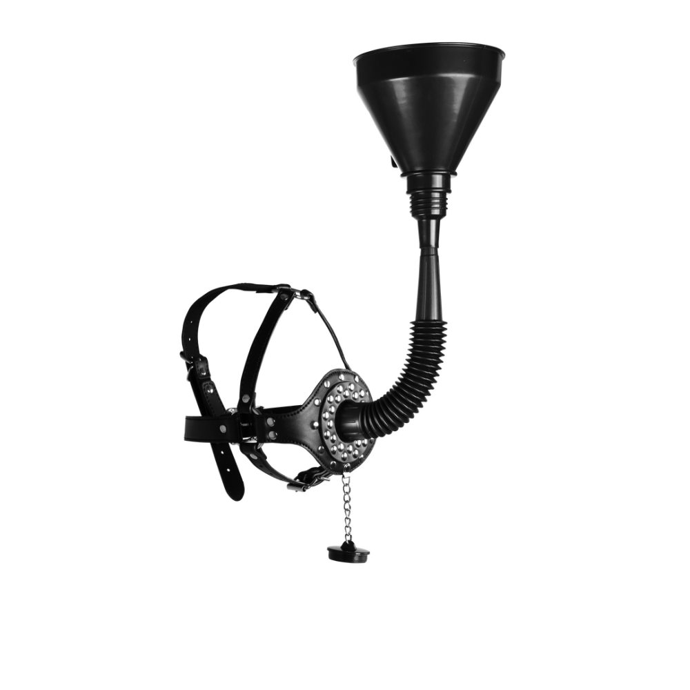 Verleg je grenzen met dit fantastische hoofd harnas. Aan het stevige leren harnas zit een speelse trechter vast, zodat je niet kunt ontsnappen tijdens het voeden of drinken. En als het tijd is om op te ruimen, verwijder je de trechter en laat je de met rubber beklede buis achter in de mond van je sub. Met die stoere metalen gespen kun je de pasvorm gemakkelijk aanpassen voor maximaal comfort en controle. Het is tijd om je wildste BDSM-fantasieën de vrije loop te laten en je plezier naar een heel nieuw niveau te tillen.