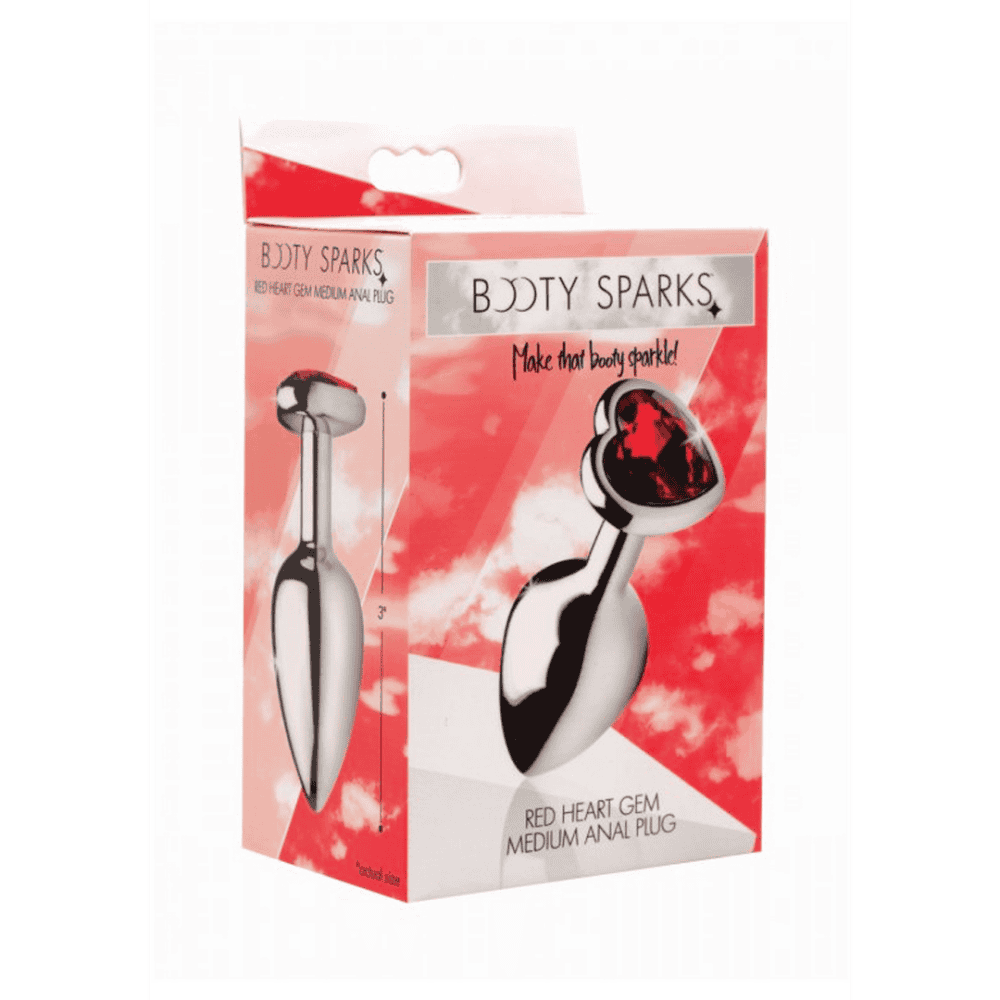 Prikkel je verlangen naar decadent anaal spel met deze prachtige Booty Sparks plug! Met een gladde metalen afwerking in lichtgewicht aluminium, is het voorzien van een zoete hartvormige edelsteen in diep karmozijnrood. De slanke schacht zorgt ervoor dat hij niet wegglijdt, zelfs tijdens krachtig spel. Je zult willen pronken met je nieuwe sprankelende kont terwijl je voorover buigt en je geliefde plaagt. De nikkelvrije aluminiumlegering is mooi gewogen en temperatuurgevoelig voor de perfecte hoeveelheid sensatie. Als het spel voorbij is, is het niet-poreuze materiaal gemakkelijk schoon te maken zonder schadelijke bacteriën. Laat die buit schitteren!