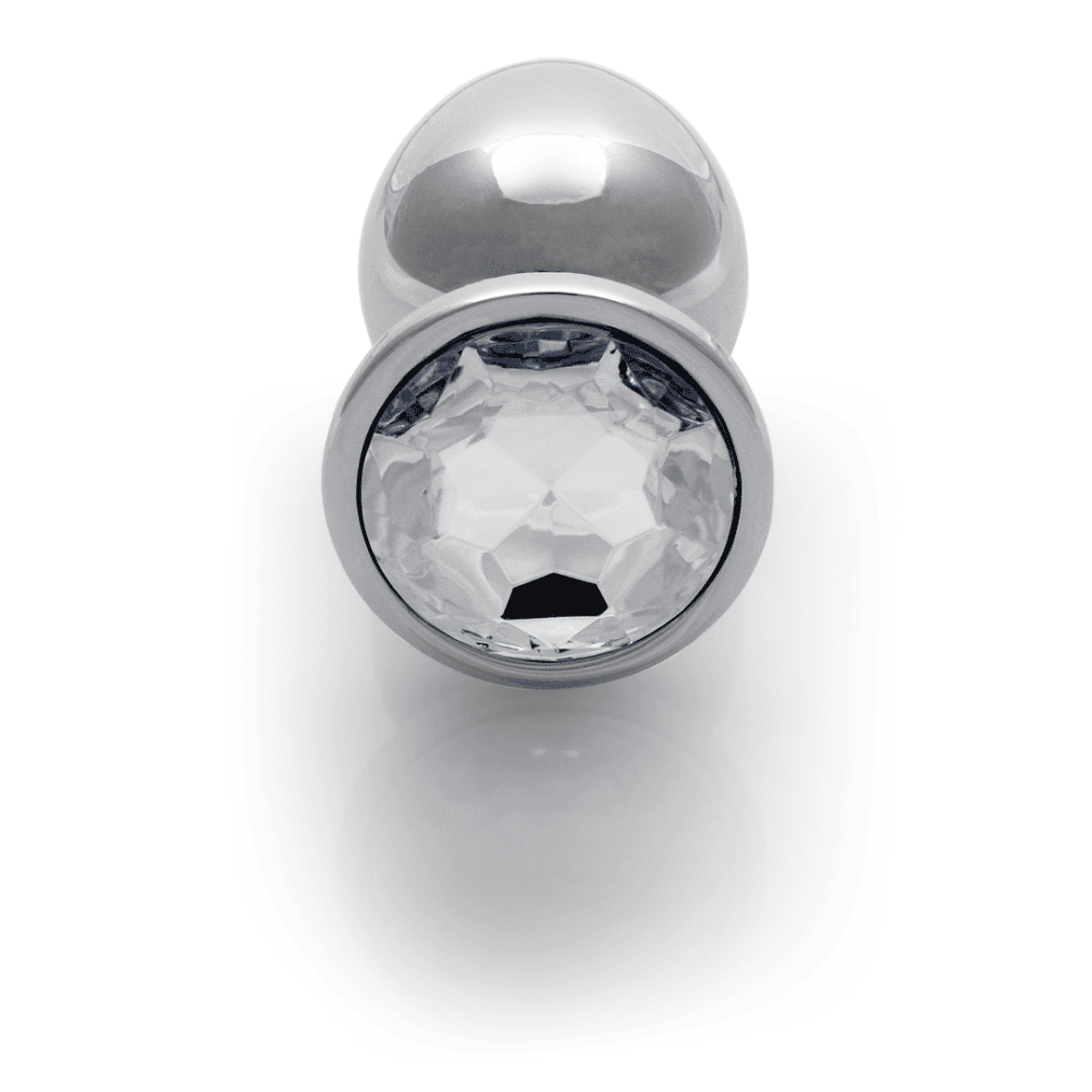 Ronde Edelsteen Butt Plug - Groot - Zilver/Diamant