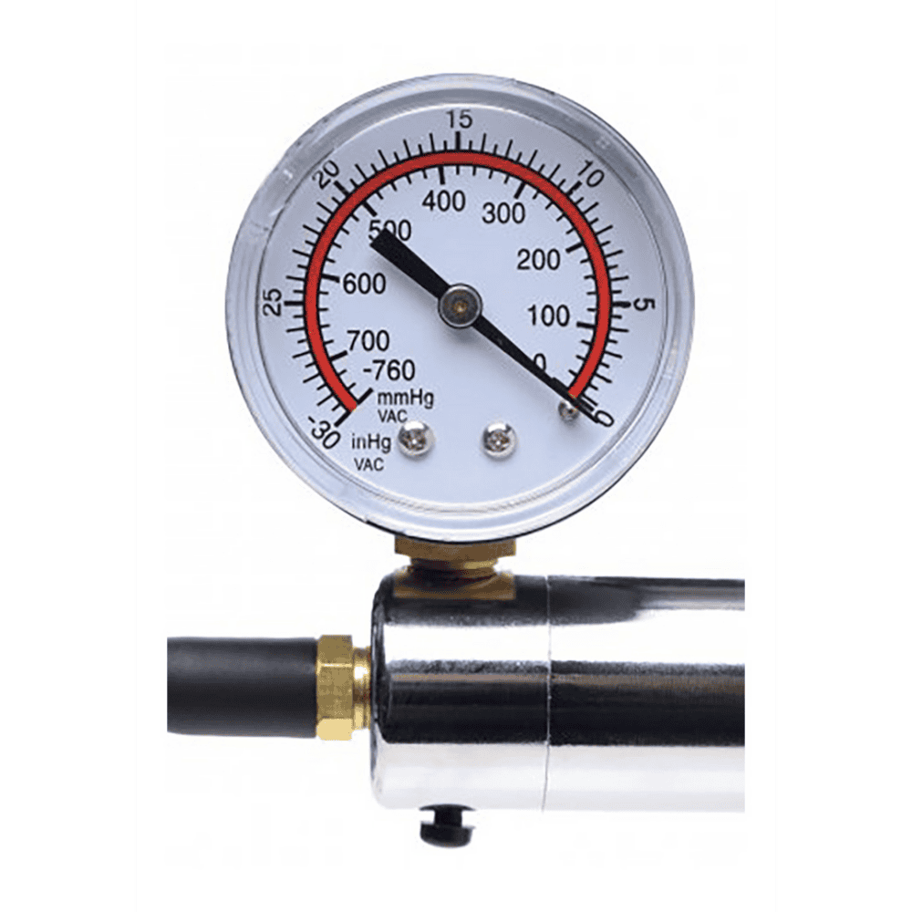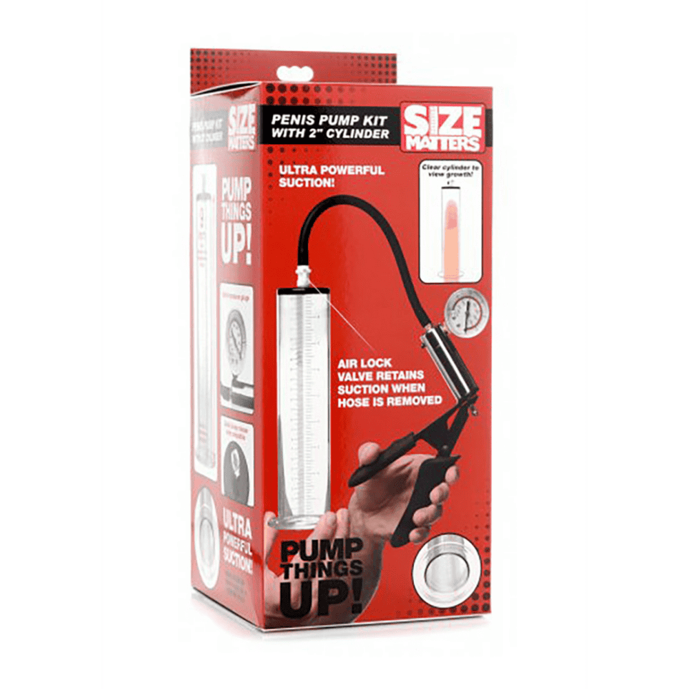 Pomp de boel op! Deze penispompset heeft een transparante cilinder van 9 inch met meetmarkeringen, zodat u uw voortgang met elke pomp kunt volgen. De brede lipbasis zorgt voor een goede afdichting, terwijl de flexibele slang en het snelontgrendelingsventiel het gemakkelijk maken om de pomp te manoeuvreren en los te laten wanneer je klaar bent om te spelen. De ergonomische handpomp wordt geleverd met een grote manometer, zodat u de hoeveelheid druk kunt vinden die het beste bij uw pakket past. Deze pompset is perfect voor diegenen die een meer gevoelige en langdurige erectie willen – gebruik je favoriete cockring om je nieuwe opgepompte schacht te onderhouden! Afmetingen: Totale lengte 9 inch, diameter opening 2 inch, slanglengte 10,25 inch Materialen: metaal, acryl, ftalaatvrije siliconen Kleur: transparante penispompset met 2 inch cilinder Specificaties: Verbeter uw erectie: alles wat u nodig hebt om uw pakket te pompen is inbegrepen – verhoog de bloedstroom naar uw schacht om de duur en gevoeligheid van uw erectie te verbeteren Observeer uw groei: de transparante cilinder is voorzien van meetmarkeringen zodat u uw voortgang kunt volgen, terwijl de brede basis bij de opening van de cilinder zorgt voor een veilige afdichting Ergonomische handpomp met manometer: De handpomp met gemakkelijke grip maakt het gemakkelijk om lucht uit de kamer te persen houd de manometer in de gaten om het zuigniveau van uw voorkeur te vinden Snel en eenvoudig ontgrendelingsventiel: koppel de slang los met het snelontgrendelingsventiel het eenvoudige ontwerp maakt het gemakkelijk om de slang los te maken en weer vast te maken terwijl je speelt