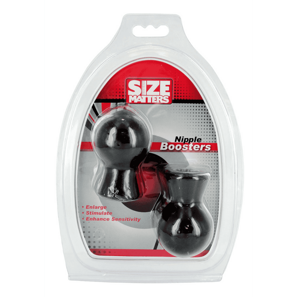 De Size Matters Nipple Boosters kunnen je tepels vergroten en stimuleren. Zuiging en verhoogde bloedstroom naar de tepels vergroten de gevoeligheid en het genot. Plaats ze eenvoudig over de tepels en knijp in de bol. De tepelzuigers creëren een vacuümgevoel wanneer je je vingers loslaat. Nadat je de nipple boosters hebt losgelaten, blijven ze op hun plaats en kun je genieten van handsfree stimulatie! Afmetingen: 6,7 cm lang, 2,8 cm opening binnendiameter, 4,3 cm bol diameter Materiaal: Rubber Kleur: Zwart