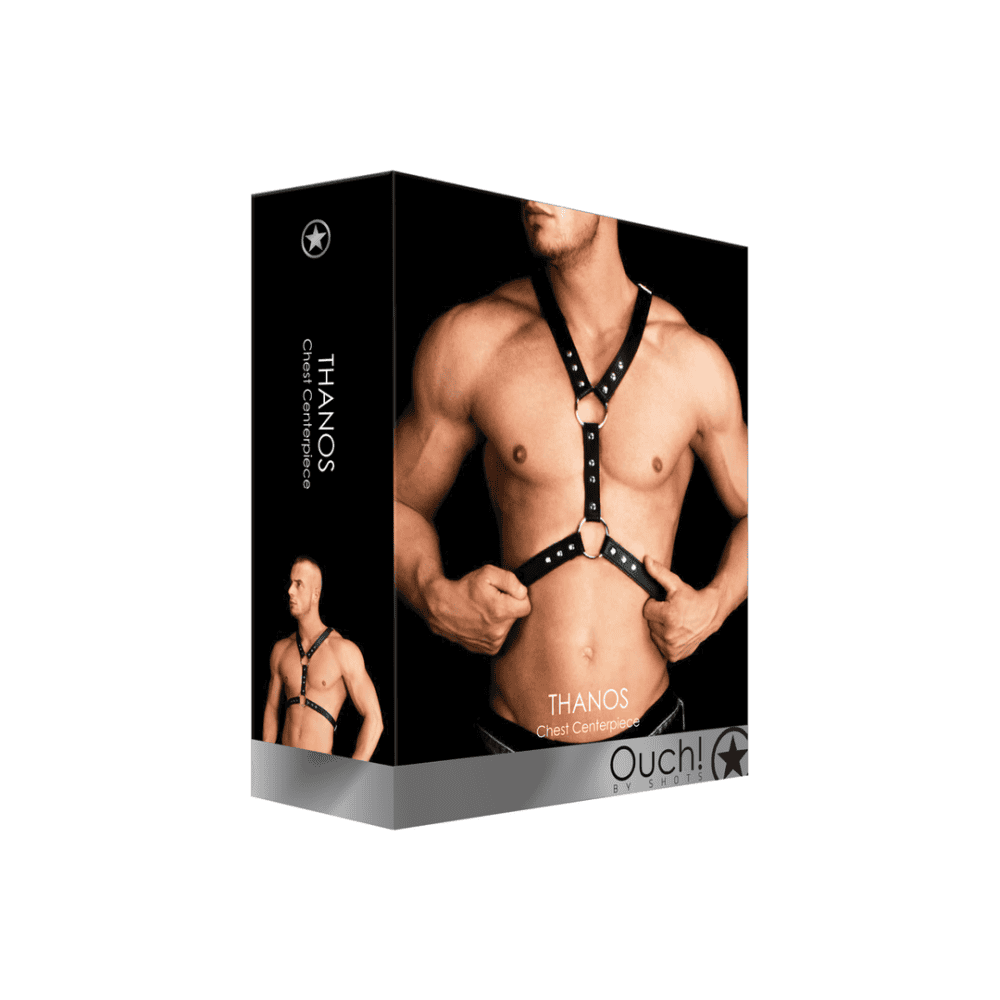 Met een grote o-ring in het midden van de borststreek die vastgemaakt is op stevig zwart leer en versterkt is met sterke spijkers is dit harnas een absolute blikkenvanger! Op beide zijden van dit centraal stuk zijn er nog twee o-ringen en gebonden lederen riemen van hoge kwaliteit die met elkaar verbonden zijn onder de armen en op de schouders. Beide schouderbandjes hebben stevige gespen, zodat het harnas comfortabel aansluit. Aan de haak geslagen worden is nog nooit zo gemakkelijk geweest!