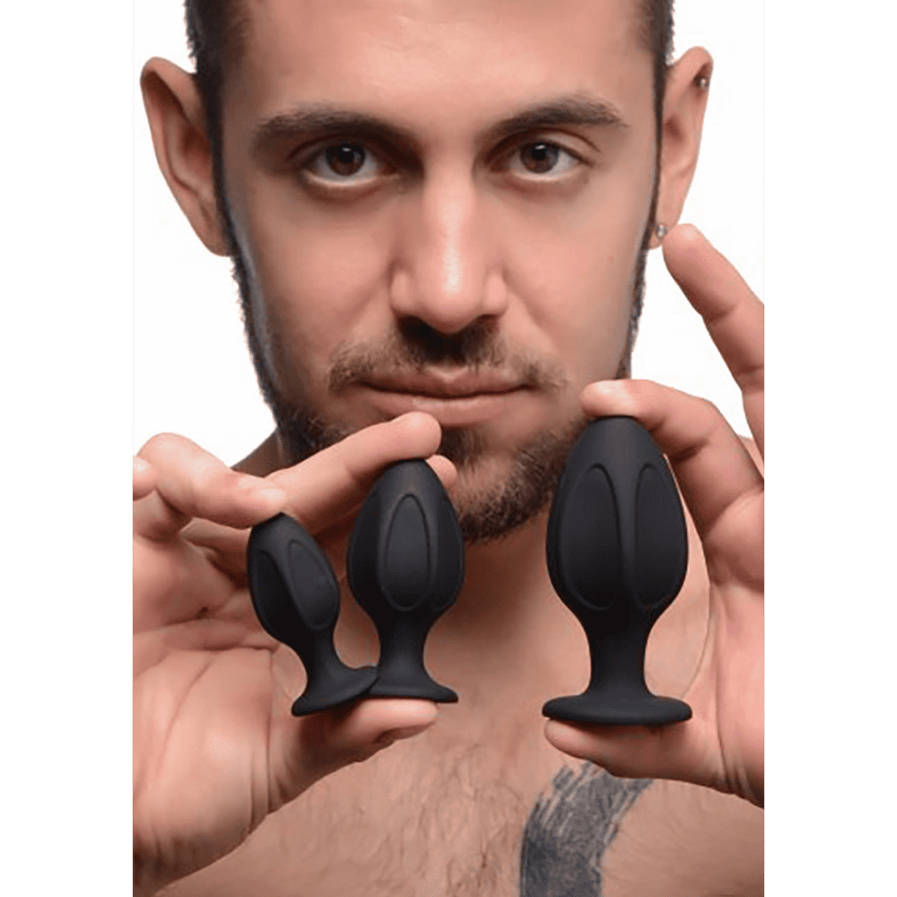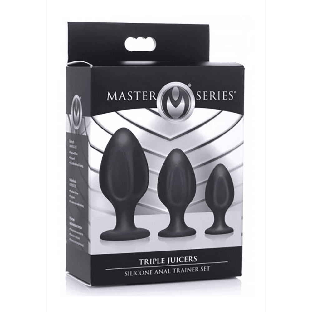 Drie sappige anaalpluggen voor alle niveaus van backdoor-spel! Uniek gevormd voor een provocerende vulling – het stervormige lichaam biedt hoge pieken en diepe dalen waar je achterdeur in kan knijpen en genieten. De zachte en samenknijpbare siliconen body zorgt voor een verslavende vulling, terwijl de gegradueerde maatvoering van klein naar groot dit trio perfect maakt voor alle vaardigheidsniveaus. De taps toelopende punt en zijdezachte textuur van deze Juicy plugs maken deze Juicers toegankelijk en gemakkelijk om mee te spelen zodra de stemming toeslaat! De diepe valleien en hoge toppen zijn ontworpen voor verbeterde stimulatie wanneer je kontje deze pluggen goed knijpt. De krachtige zuignap bevestigt deze Triple Juicers op elk glad en plat oppervlak, zodat ze rechtop en stabiel blijven terwijl je speelt! Gemaakt met eersteklas, ftalaatvrije siliconen. Alleen compatibel met smeermiddelen op waterbasis.