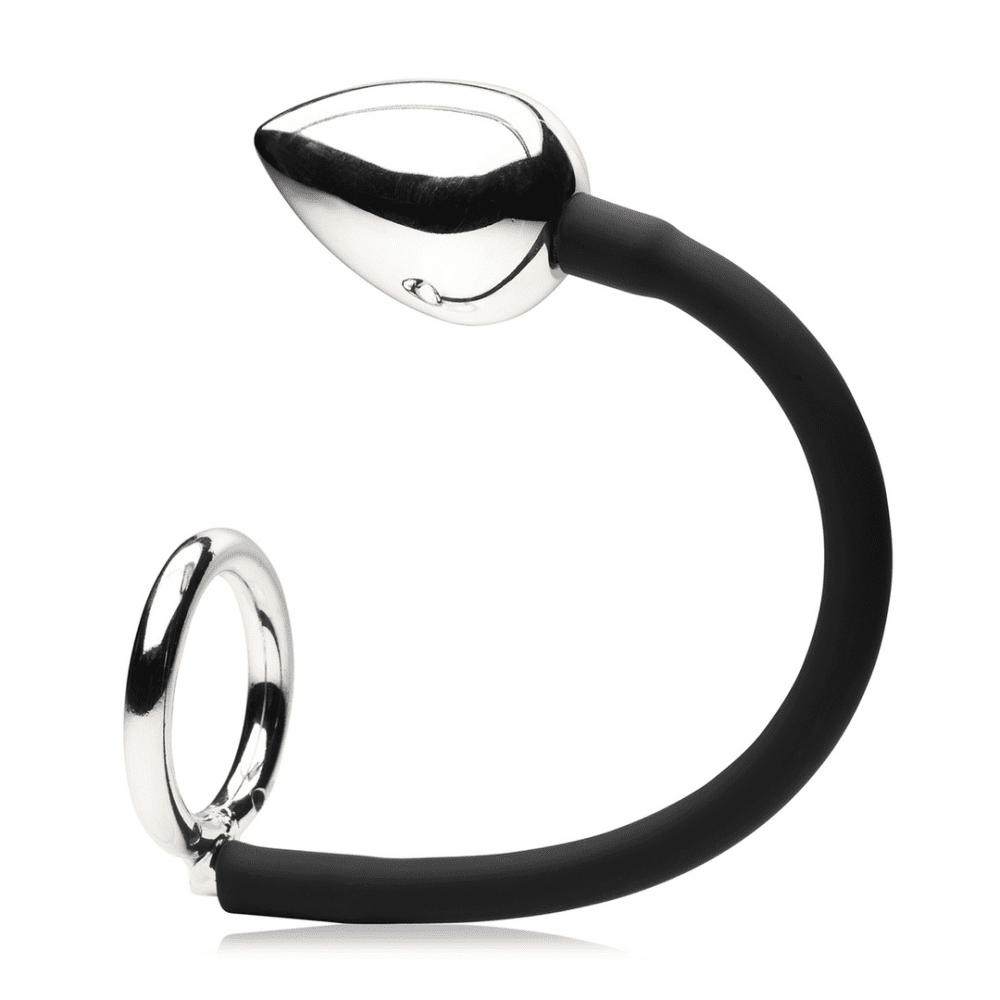 Geniet van een keiharde schacht en prostaatstimulatie met één enkel speeltje! Deze dubbel stimulerende Tug and Plug Cock and Ball Ring met Anale Plug is sexy, kinky en perfect voor alle ervaringsniveaus. De taps toelopende punt van de plug maakt inbrengen gemakkelijk en de gladde, aluminiumlegering glijdt er met behulp van wat glijmiddel eenvoudig in. De plug is verbonden met een siliconen koord. Aan het einde van het koord bevindt zich een ijzeren ring die over je schacht glijdt en fungeert als een C-ring, zodat je langer kunt doorgaan, harder kunt blijven en meer kunt genieten terwijl je prostaat wordt gestimuleerd door de anale plug. Het metaal is ook temperatuurgevoelig, zodat je kunt genieten van temperatuurspel door ze op te warmen of af te koelen met heet of koud water. Al het metaal is nikkelvrij voor gevoelige huid. Het siliconen koord is gemaakt van ftalaatvrij, premium siliconen en is veilig voor het lichaam. Gebruik alleen water- of olie-gebaseerde glijmiddelen voor de beste resultaten. Om schoon te maken, gebruik warm water en milde zeep, spoel het af en spray met een speelgoedreiniger voordat je het droogdept. Begin met een slappe schacht en breng wat glijmiddel aan op je schacht, ballen en de ring. Laat één bal tegelijk in de ring glijden totdat beide door de ring zijn. Trek vervolgens je schacht door de kop. Zodra het over de schacht en ballen is, kun je stoten of pompen om jezelf hard te krijgen. Neem dan de plug, smeer deze in en ook je achteringang. Neem je tijd en duw het langzaam naar binnen. Zodra je beide items op hun plaats hebt, geniet van het spelen met je partner! De ring helpt je langer vol te houden en de druk op je prostaat maakt je uiteindelijke ontlading ongelooflijk intens! Afmetingen: Totale lengte: 28,4 cm. Binnen diameter van de cockring: 5 cm (50mm). Plug: 5,8 cm lengte, 3,8 cm diameter. Lengte koord: 21,6 cm. Materialen: Plug: Aluminiumlegering Ring: Ijzer Koord: Siliconen Kleur: Metaal, zwart Opmerking: Gebruik alleen met olie- of water-gebaseerde glijmiddelen voor de beste resultaten. Belangrijkste Kenmerken: Dubbele Stimulatie: De aluminiumlegering anale plug in combinatie met de ijzeren cockring biedt dubbele stimulatie voor langdurig spel! Flexibel Siliconen Koord: Het flexibele koord zorgt voor meer beweging en comfort tijdens het dragen. Taps Toelopende Punt: De taps toelopende punt van de plug maakt inbrengen gemakkelijk met de toevoeging van glijmiddel. Veilig voor het Lichaam: Al het metaal is nikkelvrij en de siliconen zijn premium en ftalaatvrij.