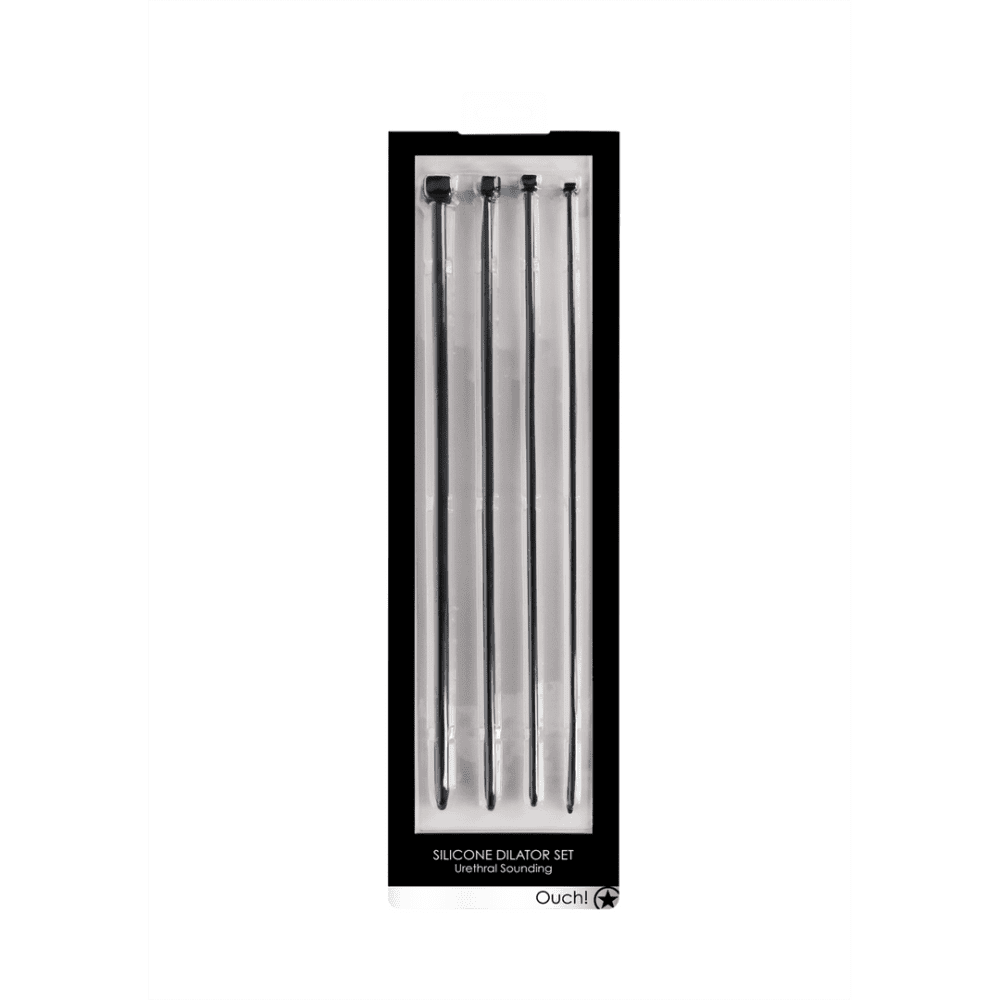 De OUCH! Urethral sounding dilator set, bestaat uit 4 ftalaatvrije, soepele silicone dilators van hoge kwaliteit, die stapsgewijs gebruikt kunnen worden voor urethraal spel. Deze kan gebruikt worden om een immense stimulatie te creëren en om geleidelijk nieuwe genotssferen te verkennen. Deze eenvoudig uitziende dilators kunnen zorgen voor ongelooflijke sensaties en helpen met het opbouwen van sterke erecties en krachtige orgasmes. Ze zijn ideaal voor BDSM-spel en in het bijzonder om medische spelervaringen te creëren. Elke dilator heeft een inbrengbare lengte van 35,7 cm, met diameters die variëren van 0,35 cm tot 0,75 cm voor geleidelijk comfortabele vergroting. Elke plug heeft een vierkant uiteinde dat fungeert als stopper en zorgt voor extra grip. Waarschuwing: Als er niet zorgvouldig mee wordt omgegaan, kan het leiden tot irritatie, scheuren van de urethra, of tot een urinaire kanaalinfectie.