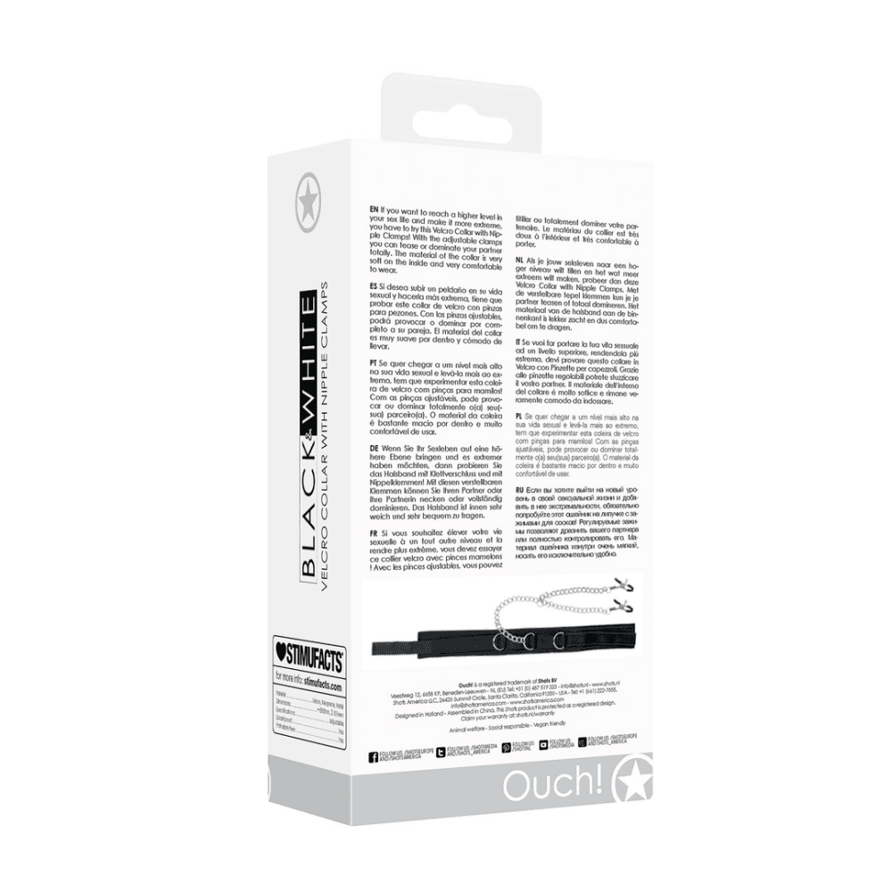 Als je jouw seksleven naar een hoger niveau wilt tillen en het wat meer extreem wilt maken, probeer dan deze Velcro Collar with Nipple Clamps. Met de verstelbare tepel klemmen kun je je partner teasen of totaal domineren. Het materiaal van de halsband aan de binnenkant is lekker zacht en dus comfortabel om te dragen. Het klittenband maakt het mogelijk om de halsband in iedere maat te verstellen.