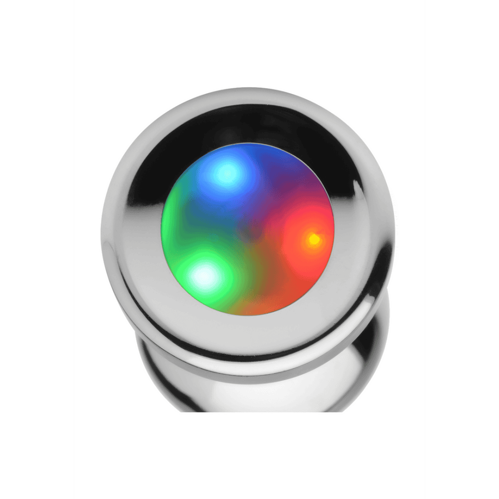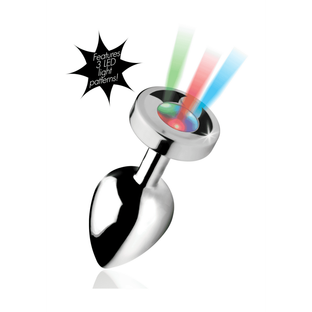 Schud je groove ding en verlicht de nacht! Deze groovy booty plug heeft 3 LED-lichtpatronen om een ​​langzame, medium of snelle stroboscoop van kleuren te ervaren. Het slanke, gladde metaal vormt een taps toelopende punt die gemakkelijk op alle ervaringsniveaus kan worden ondergebracht. Een smalle steel maakt hem perfect voor langdurig gebruik, of je nu naar een rave gaat of hem op een date draagt ​​- verras je partner als de lichten thuis uitgaan! Deze plug is comfortabel gewogen en gemaakt van een nikkelvrije aluminiumlegering, die niet-poreus is voor een grondige reiniging na gebruik met milde zeep of speelgoedreiniger. Dit materiaal is compatibel met alle soorten smeermiddelen.